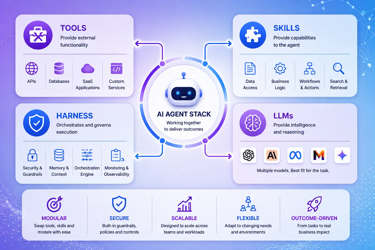 The skills-agents-harness model solves the three problems that cause enterprise agent deployments to fail.